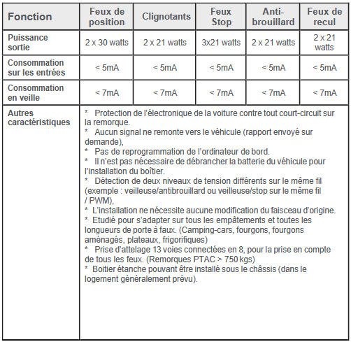 protège contre les courts-circuits et autre dysfonctionnement de la remorque. Il est