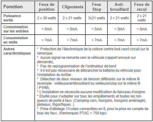protège contre les courts-circuits et autre dysfonctionnement de la remorque. Il est